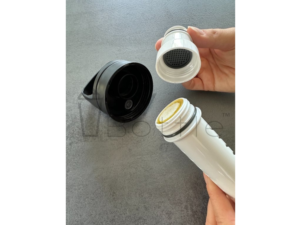 Láhev obsahuje 2-stupňovou filtraci díky membránovému mikrofiltru a filtru s aktivním uhlím.