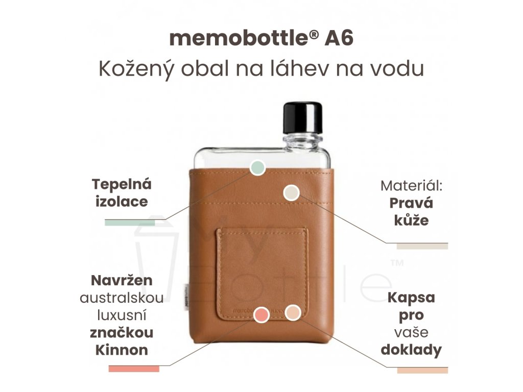 Obal z pravé zrnité kůže udělá z vaší láhve memobottle A6 luxusní a elegantní designový kousek.
