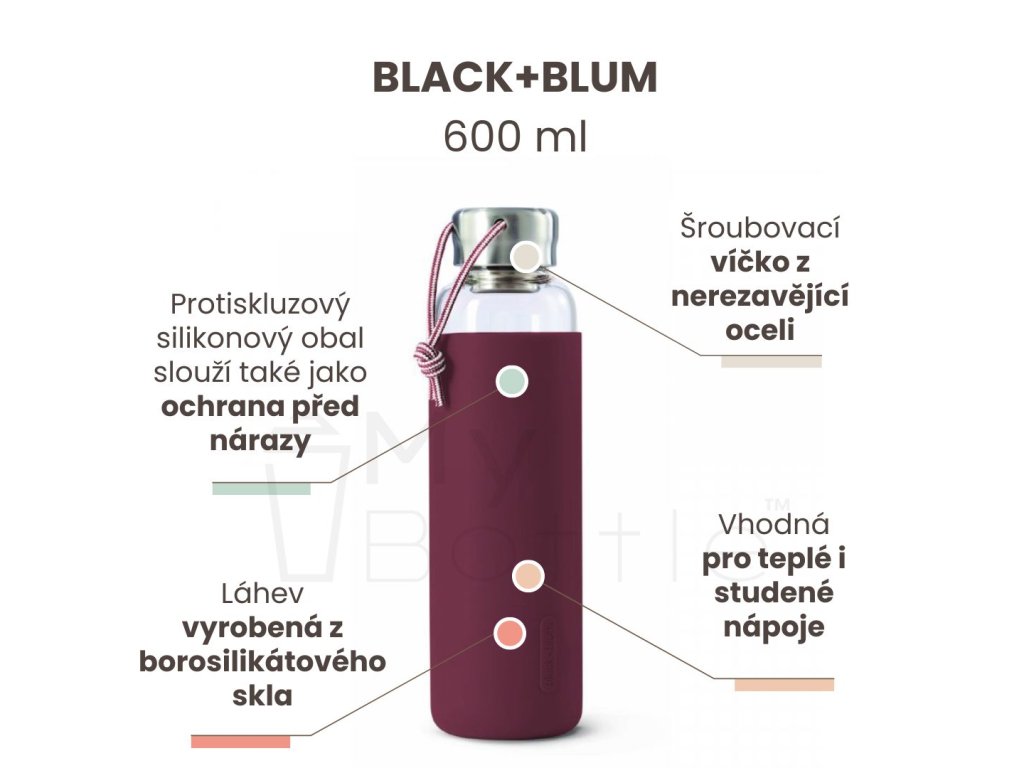 Skleněná láhev BLACK+BLUM - vínová 600 ml